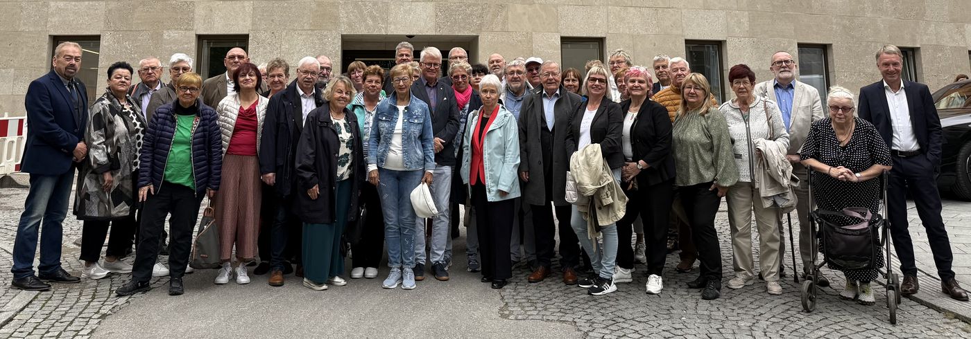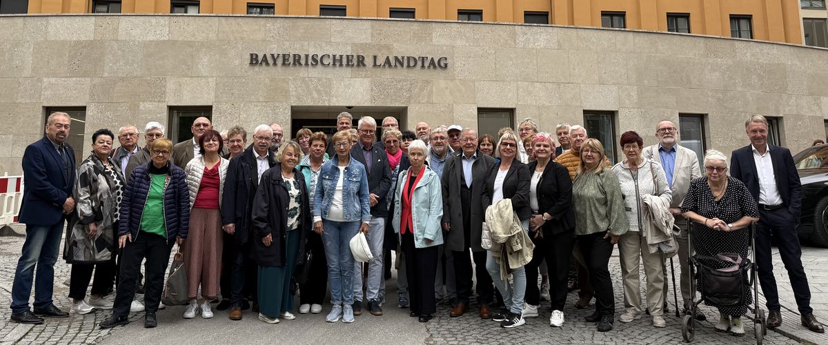 Der Vormittag des 10. Septembers war einem umfassenden Besuch im Bayerischen Landtag gewidmet. Ein Besucherfilm stimmte uns auf die historischen Gemäuer und die Abläufe im Landtag ein, die sich gerade in einer Generalsanierung befanden.