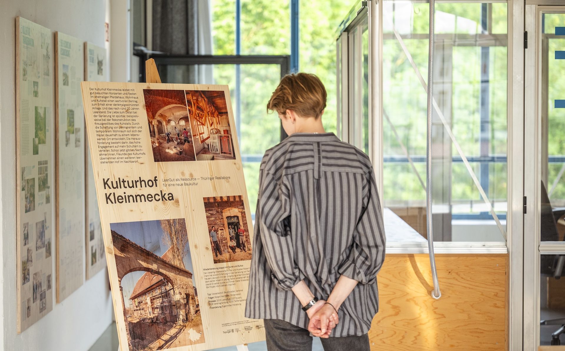 Die Ausstellung „LeerGut als Ressource“ wurde von der Stiftung Baukultur herausgegeben und in Kooperation mit dem LeerGut-Agentinnen und -agenten Thüringen e.V. entwickelt. Sie thematisiert nachhaltige Leerstandsaktivierungen in Thüringen und präsentiert die Engagierten hinter den Projekten.