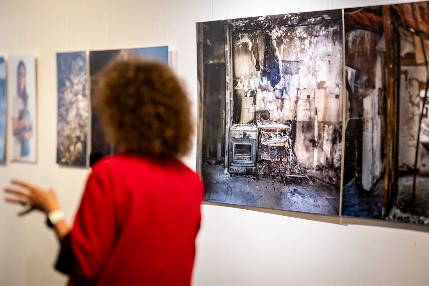 Die Ausstellung erinnert an den 7. Oktober 2023 – den schwersten Pogrom an Jüdinnen und Juden seit der Shoah – und an seine bis heute sichtbaren Spuren. Die Fotografien von Halina Hildebrand zeigen Zerstörung und Verlust ebenso wie Resilienz und menschliche Nähe: Porträts von Überlebenden, Angehörigen von Geiseln und Menschen, die alles verloren haben, stehen neben Bildern der verwüsteten Orte. Ein begleitendes Video vertieft diesen Blick und gibt den Stimmen der Betroffenen Raum.
